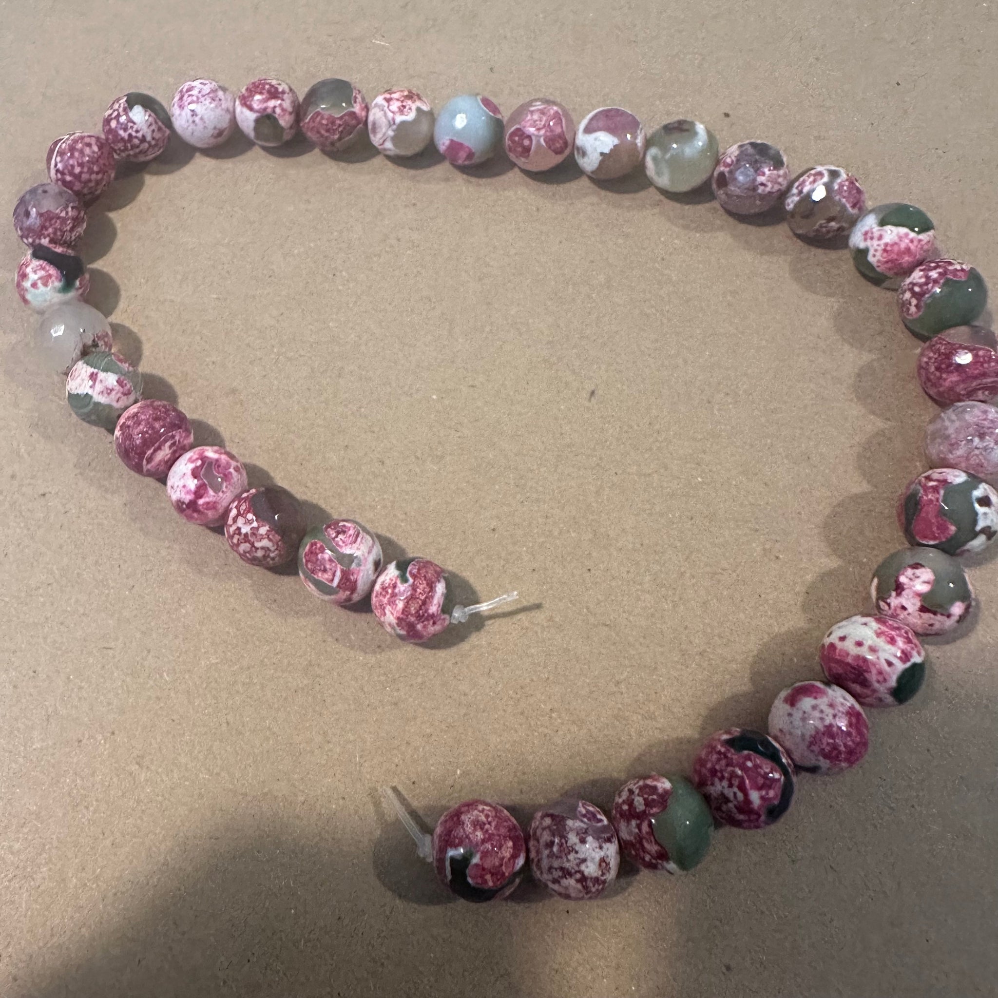 Type: agate Color: pink and green Style: facetedSize: 12mmHole size: 1.6 mmNumber of beads: about 33