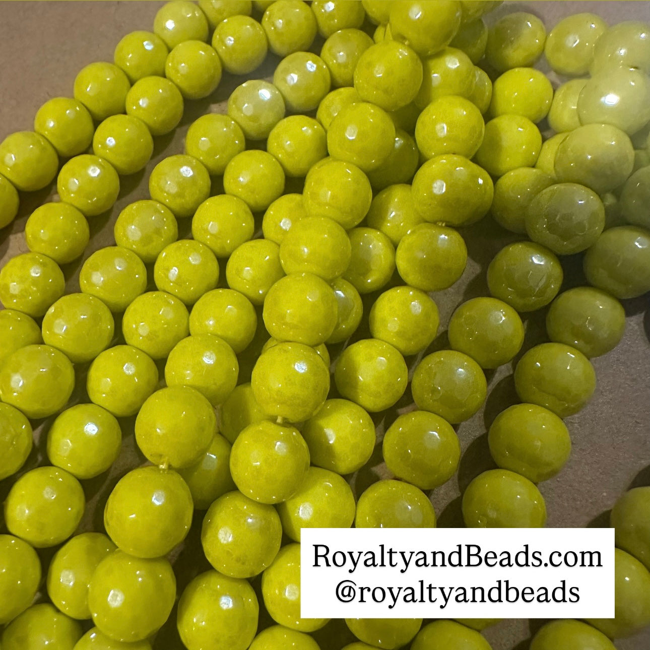 Color: rainbowish yellow Type: jadeStyle: faceted Size: 10 mmHole size: 1mmNumber of beads: about 37