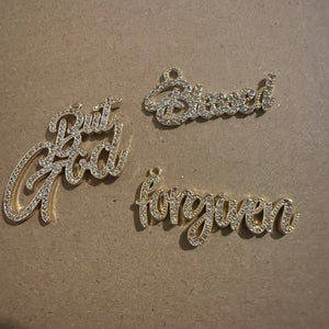 3 pave word charms ( gold)