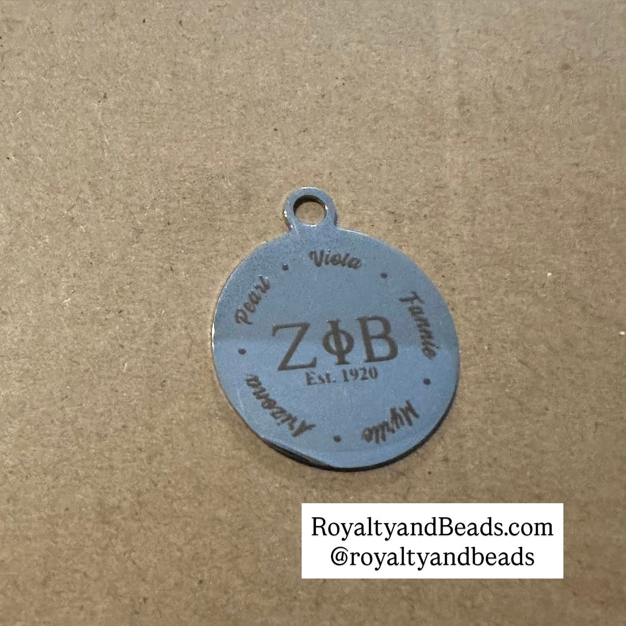 Your choice of stainless steel charms with founders names: